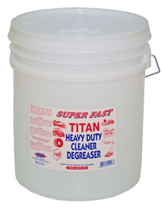 Super Fast Titan is a heavy duty concentrated cleaner and degreaser especially formulated to remove grease oil and grime from engine parts machinery whitewall tires etc. Contains strong solvents for the toughest jobs.